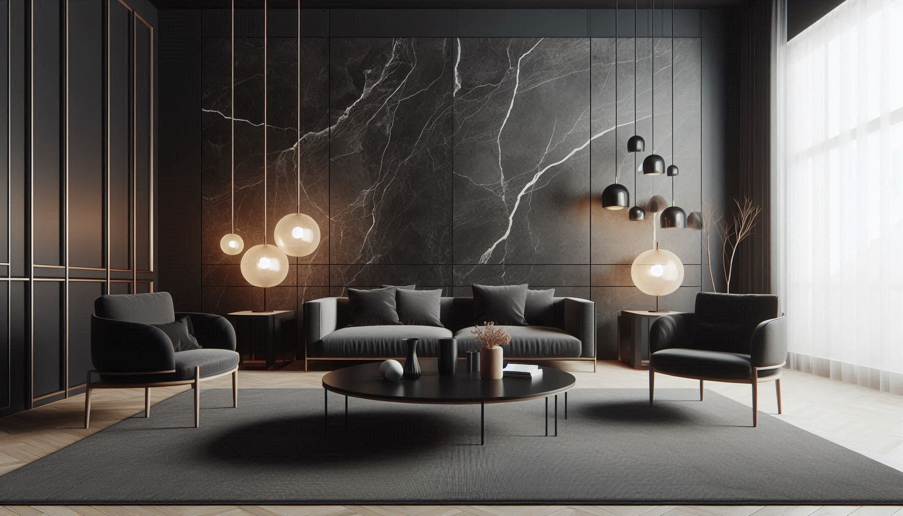Przykłady zastosowania ciemnych kolorów w salonie